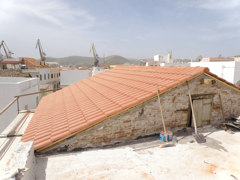 Επισκευή δώματος και στέγης παλαιού κτιρίου στην Ερμούπολη Σύρου.